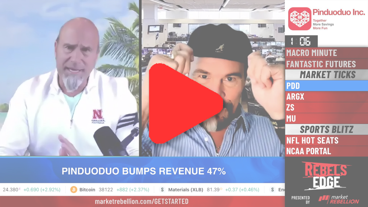 Join Jon and Pete Najarian on today's episode of Rebel's Edge as they discuss stocks including Pinduoduo's big Temu play and the UOA that forecast the corresponding pop in PDD, Argenx struggling to beat placebos in testing, Zscale sliding 5%, and Micron taking a bit of a dip. Gain a deeper understanding of these stocks as Jon and Pete share their perspectives, potential growth prospects, and market predictions. They also talk about the college football portal and who's getting fired in the NFL. Stay on the cutting edge with Rebel's Edge.
