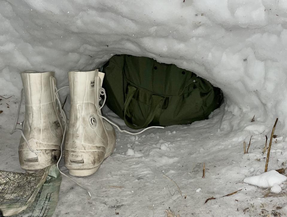 The second night was claustrophobic, as well. I slept in a snow cave no more than three-feet-high inside. I had to slide on my back to get in, hauling all of my gear. Once inside, a kind of stopper sealed up the entrance for the night, and I was left to my own devices to set up everything. Thank God for my headlamp and urine bottle.