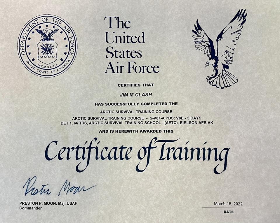 There’s an answer for that. The U.S. Air Force, in addition to including critical items needed for survival in your ejection-seat pack, offers arctic survival training - colloquially known as the “Cool School” - at Eielson AFB near Fairbanks, Alaska. From October through March, pilots and other military personnel who operate in cold-weather environs take to the field under the harshest of conditions, and learn to make do with the barest of necessities.
