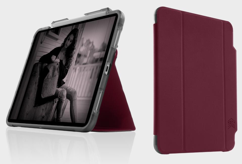 Perfect for protecting your tech on the go, this sleek and sophisticated case for $79.95 is designed for the ultimate digital defense. The Dux Studio offers multiple viewing modes, built-in storage and protection for the Apple pencil, and a secure magnetic closure wrap. And it comes in a bold red. Perfect for the techy traveler.