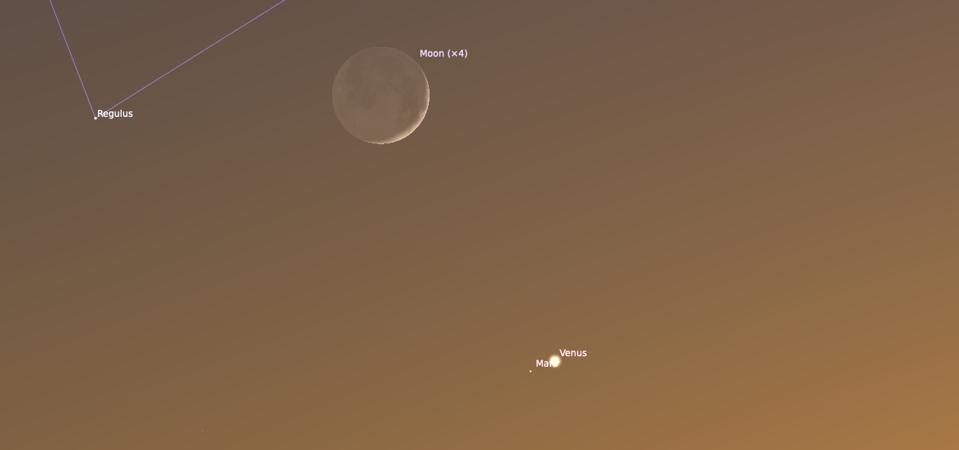 Monday, July 12, 2021: Venus, Mars and the Moon in a close conjunction