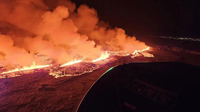 Iceland’s government informed the public that the fissure opening in the ground where lava emerged from was almost four kilometers long