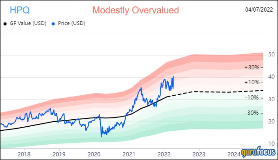The company’s profitability fared even better with an 8 out of 10 rating. Although the operating margin is in decline, its returns on assets and capital outperform a majority of competitors. HP is also supported by a high Piotroski F-Score of 8 out of 9, meaning business conditions are healthy, and a predictability rank of one out of five stars. GuruFocus says companies with this rank return, on average, 1.1% annually over a 10-year period.