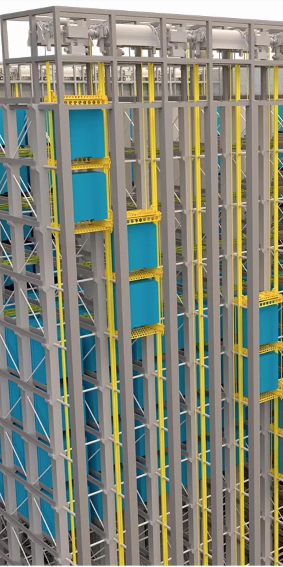 The blocks are combined with proprietary system design and machine vision, and AI-enabled software that operates specially designed lifts which autonomously orchestrate the lifting and lowering of the blocks, thus storing the potential energy at height and then discharging electricity as the blocks are lowered (see figure above).