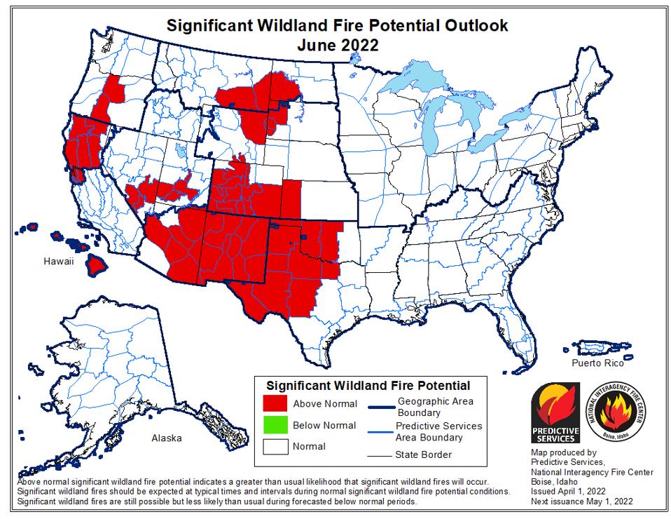 Another implication of a drought plagued West is wildfires. A recent Desert News headline read, “California, Utah and other Western states face scary wildfire season.” According to the National Interagency Fire Center (NIFC), 19,226 wildfires have burned in the United States since January 1st while scorching 820,587 acres. This is above the 10-year average according to NIFC. The recently released April to July Significant Wildland Fire Potential Outlook appears ominous too.