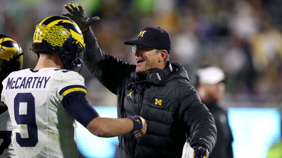 Coach Jim Harbaugh’s 8-0 Wolverines are shooting for a perfect record and a run at the national championship, which would include beating currently undefeated Ohio State in the regular-season finale Nov. 25. After losing to the Buckeyes for eight consecutive years, Michigan has beaten them the last two.