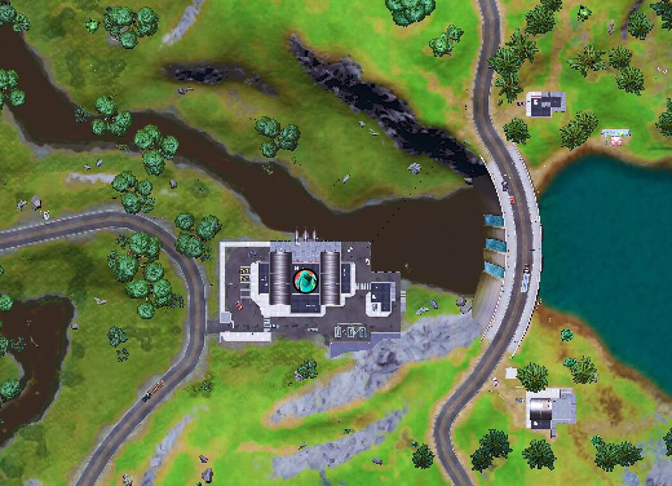 Hydro 16 is the dam and hydro plant that you’ll find just to the west of Misty Meadows and the big lake. It’s just east of Slurpy Swamp. It’s not a Named Location, but rather a landmark, though it’s been here pretty much since the beginning of Chapter 2 if I’m not mistaken.