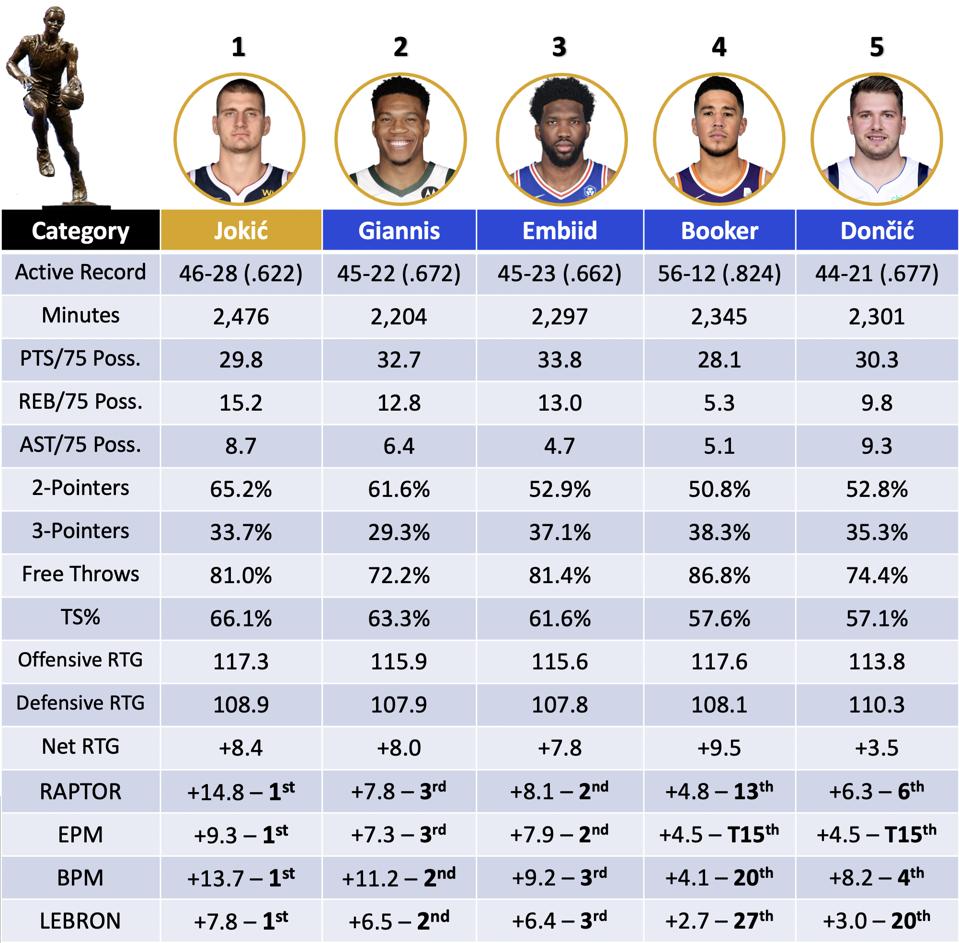 The following is my top-five for this year’s MVP, accompanied by each player’s statistical profile: