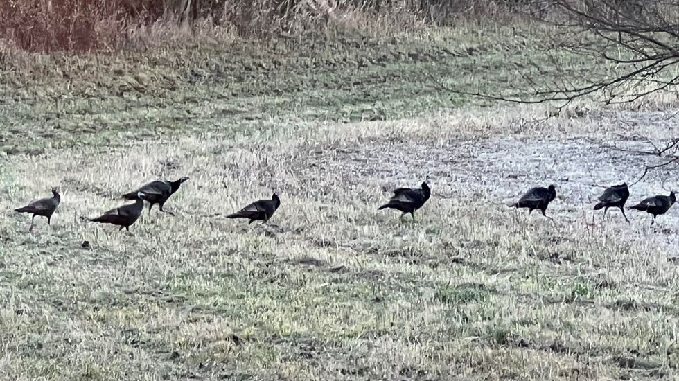 Mike Mikolajczyk has “been deer hunting for 35 years - bow and gun - and this was a first for me: Turkeys.” In eastern Will County on the day after Thanksgiving, he had 11 turkeys. “One flew into a tree 15 yards from me and another flew overhead as I was walking out,” he emailed. “That was pretty cool to see.” That about sums it up.