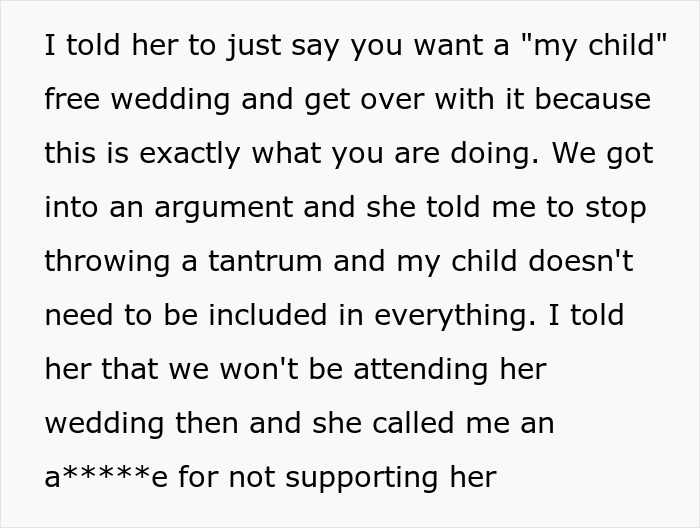 Reddit user Eastern-Second-2528 has a sister who is about to get married. The problem arose when her teenage daughter was excluded from the guest list. A heated argument ensued, and the author got called out for “throwing a tantrum.”