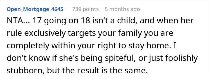 People in the comments were divided, but most of them sided with her