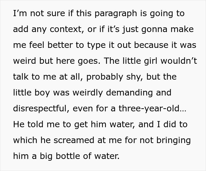 The woman went on to add some details about the kids’ behavior while she was waiting for the police. While the little girl refused to say a word, her younger brother was rather entitled, telling the woman to bring out toys and yelling at her for not delivering a “big” bottle of water.