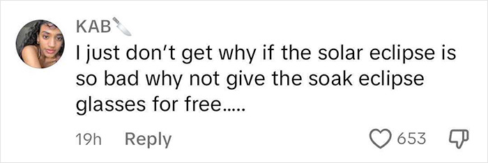 In addition, people in the comments massively praised the author for her attempt to prevent similar cases for other folks in the future – after all, her video can certainly be remembered later, when someone wants to take another look at the solar eclipse with no proper protection. “You’re going to save someone,” another person wrote in the comments, and one cannot but agree with this. And what do you, our dear readers, think about this?