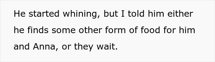When he started complaining and whining about it, she put her foot down and said that it was either that or he and his kid could look for food somewhere else. But probably feeling confused that she yelled at him, OP went online and asked Redditors whether she was in the wrong for her actions.
