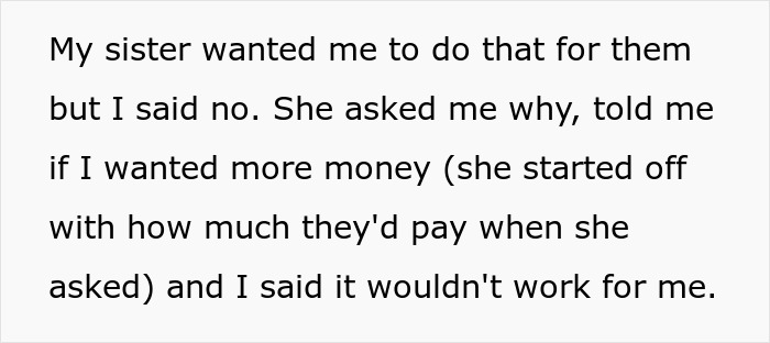 According to the author, her sister seemingly avoided dealing with the ongoing issue between the two children. She then took action by rejecting the babysitting request, which only caused more problems.