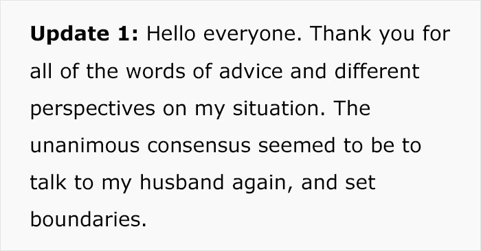 Later, OP shared an update of what happened when she talked with her husband