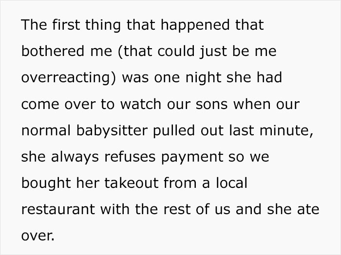 A woman turned to the internet for advice when she started to suspect her husband was forming an emotional attachment to their babysitter. While there was no overt evidence, she felt like there were a lot of smaller signs. Readers did their best to parse all the information and help OP navigate through these treacherous waters.