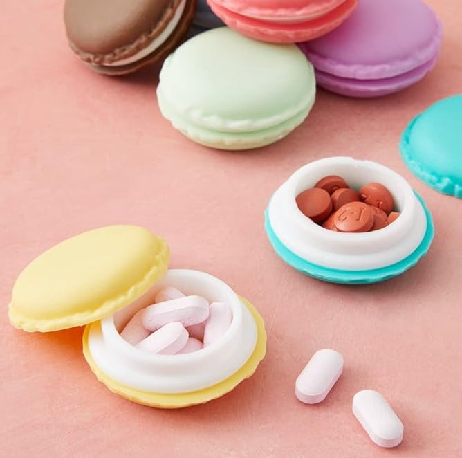 Organize meds and supplements in these colorful macaron pill cases. The 16-piece set includes eight vibrant colors: red, light blue, pastel green, orange, purple, pink, teal, and yellow. The lidded pill cases are made of durable plastic, and their compact design makes them easy to pop in your bag for on-the-go use and travel.