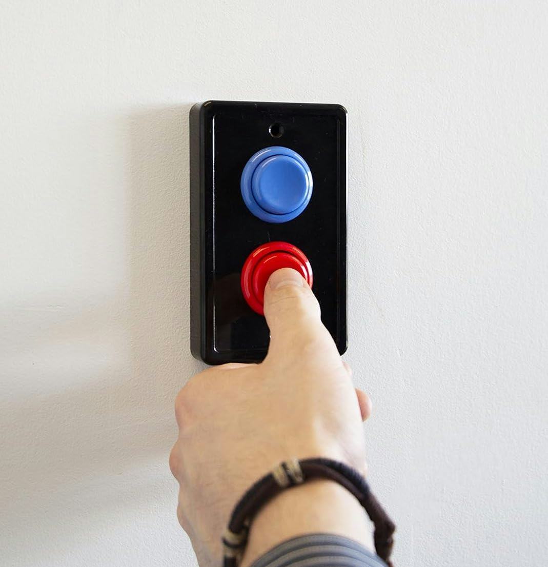 Add a nostalgic touch to a game room or family room with this arcade-style light switch cover. The classic arcade button wall plate works over any rocker-style light switch. Since the push-buttons make contact with the upper or lower portion of the rocker switch hidden underneath, you won’t need to change up any of your electrical work. The cover has a glossy finish that makes cleaning easy, and it includes mounting screws.