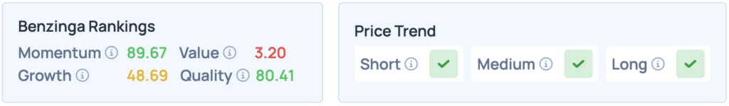 Tesla shares were down 3.54% on Thursday, closing at $445.91, and are up 0.17% overnight. The stock scores high on Momentum and Quality in Benzinga’s Edge Stock Rankings, with a favorable price trend in the short, medium and long terms. Click here for deeper insights into the stock, its peers and competitors.