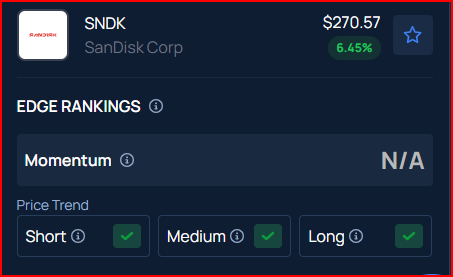 Benzinga Edge Stock Rankings shows that Sandisk had a strong price trend over the short, medium, and long term. Check the detailed report here.