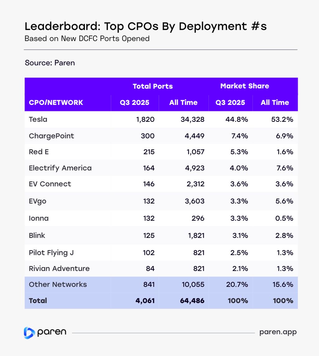 With Tesla expanding Supercharger access to pretty much all EVs, usage patterns are also shifting, Paren said in its report. Some non-Tesla networks are seeing lower utilization as more drivers make Superchargers their default option for charging.