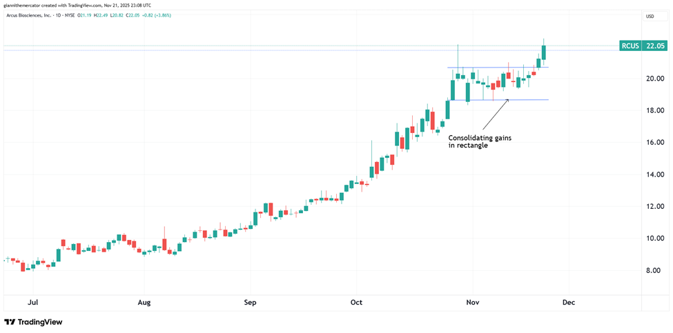 • From a charting perspective, RCUS is consolidating its recent gains within a rectangle pattern, which points to more upside.
