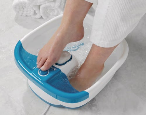 This foot spa is a bestseller with almost 40,000 reviews, and it costs less than a single salon pedicure. It aims to rejuvenate and soften tired feet with its heated water, bubble jets, and raised massage nodes. It also has a removable pumice stone for exfoliation, splash guards to keep the water in, and a toe-touch control button so you don’t have to get your hands wet.