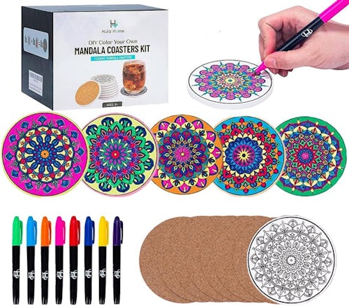 Reduce stress now and later with this mandala coaster kit. The set includes vivid markers that dry fast without stains or bleeding, so you can color your way to mental relaxation. Since the coasters are made from temperature-resistant ceramic with scratch-proof cork pads, you can also rest easy knowing that your furniture is protected.