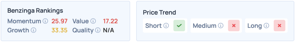 Shares of Starbucks were down 0.94% on Thursday, closing at $86.44, and another 0.47% overnight, ahead of the scheduled nationwide strike. The stock scores poorly across the board in Benzinga’s Edge Stock Rankings, but has a favorable price trend in the short term. Click here for deeper insights into the stock.