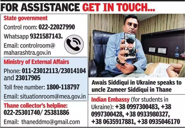 State relief and rehabilitation minister Vijay Wadettiwar on Friday said that the government had managed to contact 320 families of the 1,200 students from the state. Information was being collated about state students in Ukraine, he said. If flights can’t take off from Ukraine, arrangements will possibly be made from a neighbouring country, he added.