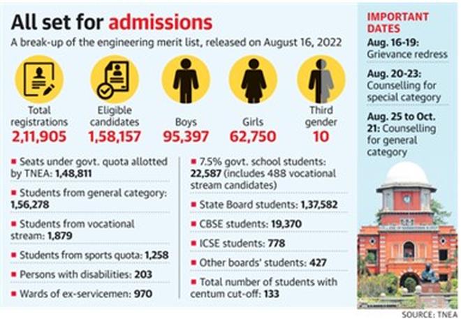 Higher Education Minister K. Ponmudi, who released the merit list on Tuesday, said this year 36,975 more candidates had registered as compared to last year and as many as 1,69,080 candidates had paid the registration fee, which too was 24,035 more than last year. Candidates may view the merit list at www.tneaonline.org.