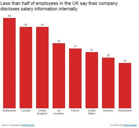 Less than half of employees in the UK say their company discloses salary information internally. This is higher than France with 33 per cent and Germany with 28 per cent respectively.