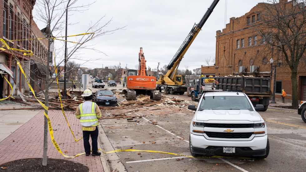 “The Illinois Emergency Management Agency is working closely with our local and county public safety partners and Emergency Managers to assess the widespread damages across the state, including here at the Apollo Theatre in Belvidere in Boone County, and at Robinson in Crawford County,” IEMA Director Alicia Tate-Nadeau said in a statement. “We continue to [assess] other damages in many counties across Illinois.”