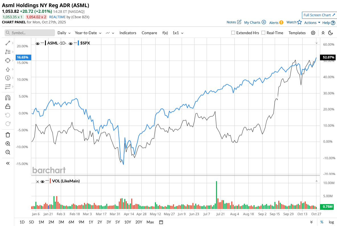 Valued at $346.8 billion, ASML stock has gained 52% year-to-date (YTD), outperforming the broader market gain. As demand for AI, data centers, and high-performance computing accelerates, this Dutch tech giant looks poised to deliver strong growth for years to come.