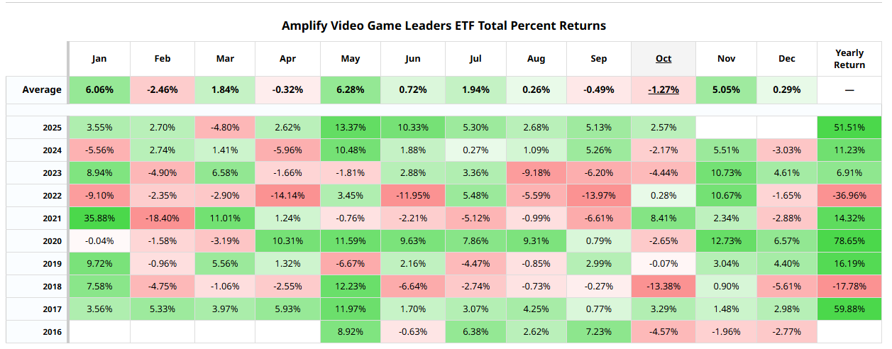 The GAMR ETF has been on a roll for much of the year, having charted positive gains every month this year except for March, when much of the market fell on concerns about threatened tariffs. However, it’s interesting to note that the GAMR ETF is coming up on what has historically been one of the best-performing months of the year.