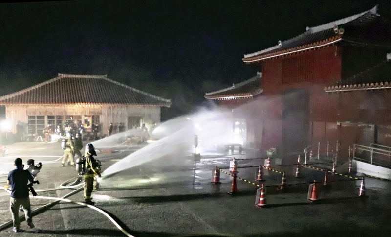 On the same day, the Naha City Fire Department held a firefighting drill at 5:30 a.m. before dawn with about 70 people, including firefighters and employees of the Okinawa Churashima Foundation.