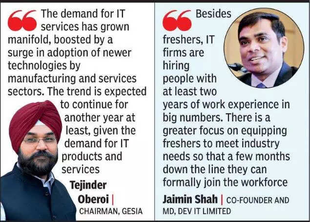 AHMEDABAD: Buoyed by the increasing demand for digitisation and automation in the state’s Information Technology (IT) and IT-Enabled Services (ITES) sector, companies in Gujarat are looking to hire more people in the days to come. Industry estimates by IT giants and other firms suggest that at least 10,000 more people are expected to be hired in the IT sector of Gujarat in the coming two quarters.