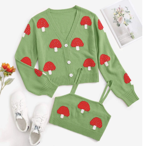 Mushroom Pattern Cardigan With Cami