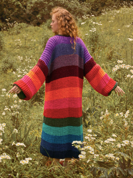 Now this is what we call a showstopper! Carry your summery rainbow vibes into fall with this hug of a sweater done up in sumptuous acrylic/wool blend with an oversized fit and stunning color palette.
