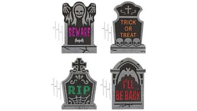 Outdoor decorative tombstones can quickly add up if you’re shopping anywhere else but Dollar Tree. Available in four glittery patterns, it has never been easier to create a budget-friendly graveyard in your yard.