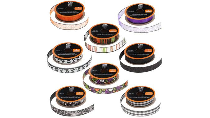 Get crafty making wreaths, centerpieces and more using Halloween-themed ribbon.