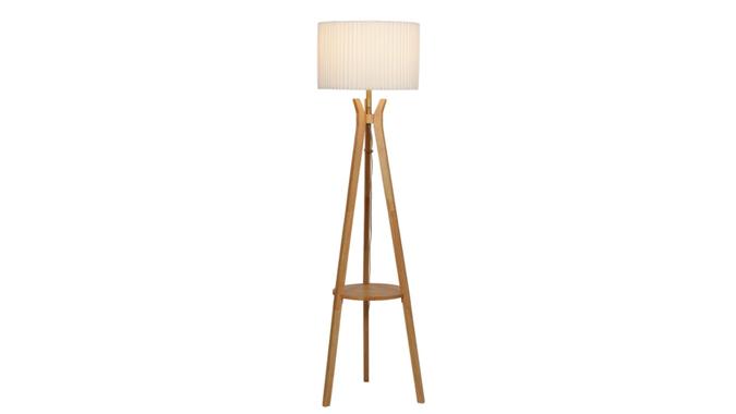 Each elegant tripod floor lamp stands at 63 inches tall and comes with a pull chain to switch the light off and back on again. A sturdy shelf is also built into the lamp for keeping small items like books or decorative accents.