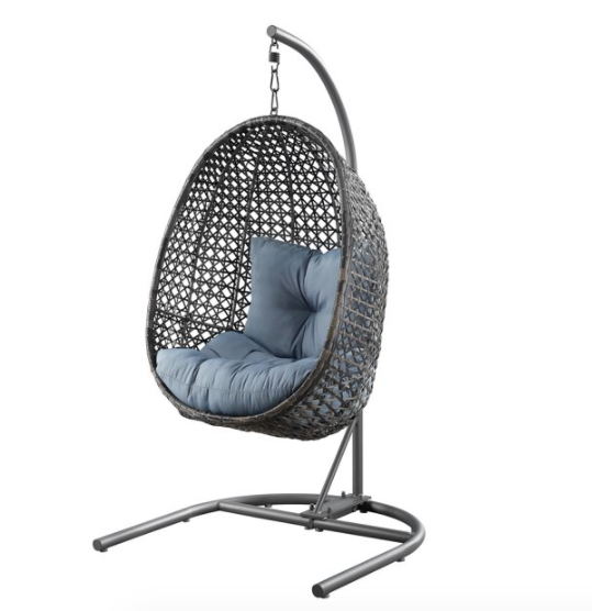 Better Homes & Gardens Lantis Patio Wicker Hanging Chair with Stand and Blue Cushion