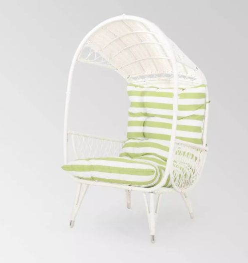 Minimal, comfortable, and oh-so-stylish, this unique trio of faux rattan pieces is a snazzy way to dress up your outdoor hangout area. The wrought iron frame and all-weather wicker make it sturdy, too, so you won’t have to worry about damage from any thunderstorms sweeping through.