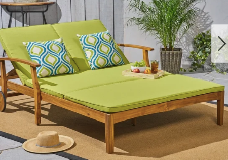 A dual lounger with classy teak wood and a bright array of colors available (though we are partial to this electric green) is the perfect way to dress up any outdoor area while ensuring you always have the perfect place to relax. Place it next to a pool, on your patio with an umbrella at the head, or just in the lawn so you can enjoy the greenery around you.