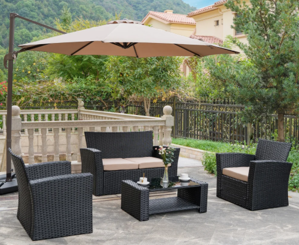 Grandview Outdoor 4-piece Black Wicker Conversation Set with Cushions - Beige