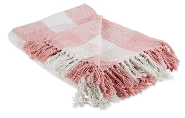 DII CAMZ11470 Pink & White Buffalo Check Woven Throw, 50x60" with 3" Fringe