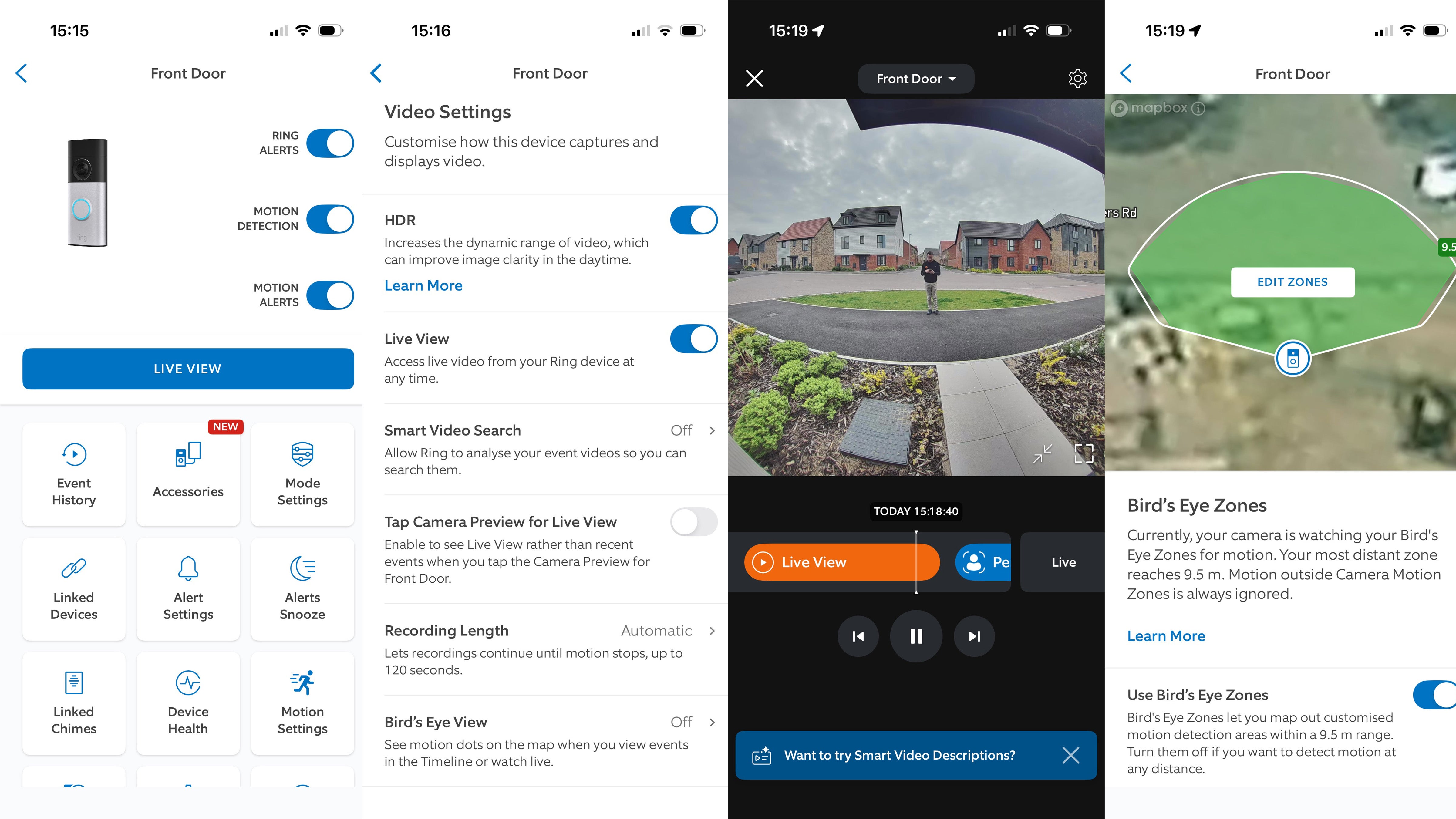The first Ring doorbell to carry the ‘pro’ name, this is the current flagship of the range. It features radar-powered 3D motion tracking and a clever bird’s eye view mode that plots the route of a visitor (or trespasser) on a satellite image of your property. That way, you can see if someone loitered around your car or checked out the garden shed, regardless of whether they pressed the bell; these features turn what is a simple video doorbell into a powerful security camera.