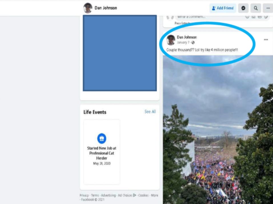 Daniel Johnson of Iowa posted a public picture of the Capitol crowd on Jan. 7. “Couple thousand?? Lol try like 4 million people,” he captioned the image.